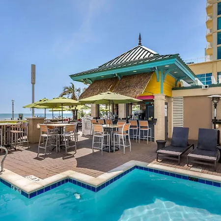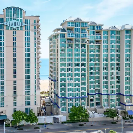 Some of the spacious rooms of Hilton Vacation Club Oceanaire Virginia Beach hotel face the oceanfront, and comprise a balcony and a seating area. Guests can also use a hot tub and a shower/bath combination, along with such amenities as towels.
